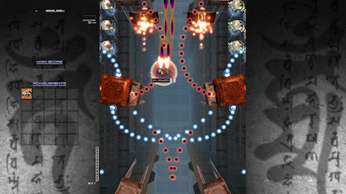 For those who haven’t encountered it: danmaku (弾幕, literally “bullet curtain”) is a Japanese arcade genre — sometimes called “bullet hell” — where the screen fills with hundreds of projectiles in elaborate, spiralling patterns. The player’s ship is tiny. The bullets are everywhere. The whole point is overwhelm. Games like Touhou, DoDonPachi, Ikaruga.