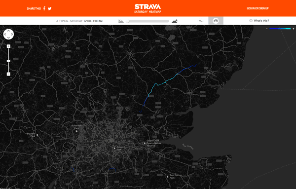 But what caught my eye was when I scrubbed the time-line selector back to the early hours of the morning, instead of a blank map I saw a single bolt of blue start to shoot out of London toward the Suffolk coast.